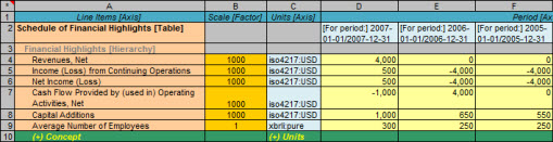 These same ideas apply to working with XBRL. Below is one screen shot of a neutral format table, you can see a complete set here.