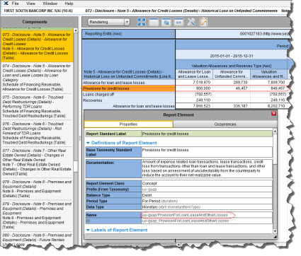 But, if you go to the disclosures (click here to view this using the XBRL Cloud viewer), specifically Note 5 - Allowance for Credit Losses (Details); you see that the FIRST concept was used along with dimensional information to represent the roll forward of the allowance for loan and lease losses:
