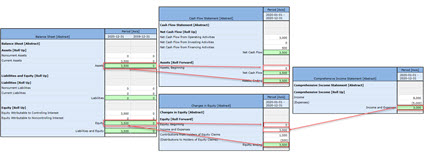 The high-level model of a financial report and double-entry accounting can be represented within the XBRL technical syntax and then used to both explain a financial report model and verify that the financial report model is consistent with that explanation.