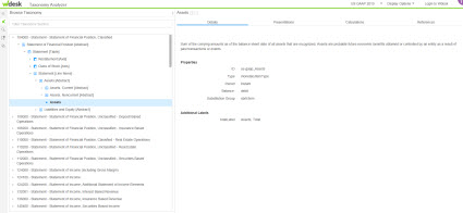 The second tool is the Wdesk Taxonomy Analyzer. This appears to be a newer tool. This tool lets you view the US GAAP XBRL Taxonomy, the IFRS XBRL Taxonomy, and some other XBRL taxonomies. Below you see a screen shot. What is cool about this taxonomy tool is that you can link directly to concepts in the tool. For example, Click here and you go directly to the concept Assets; or click here and you go to the concept earning per share text block. While the Yeti taxonomy viewerhas similar linking functionality, the Yeti URLs cannot be proactively figured out. You have to go to the concept, grab the link, and then you can link to the concept. But, with the Wdesk Taxonomy Analyzer if you know the name of the concept, then you can link to it. If you don't realize it, this is a big deal.