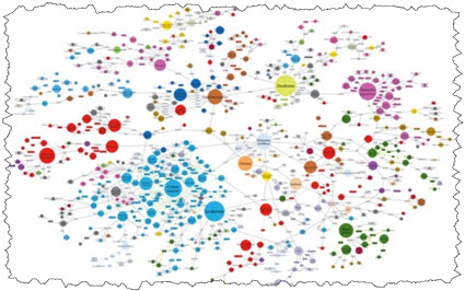 But there are tools for working with graphs of knowledge. One of those tools is Neo4j. Here is a small financial report knowledge graph converted from XBRL into Cypher (the syntax of Neo4j) and then loaded into Neo4j. Note the coloring, the sizing of the nodes, etc.: