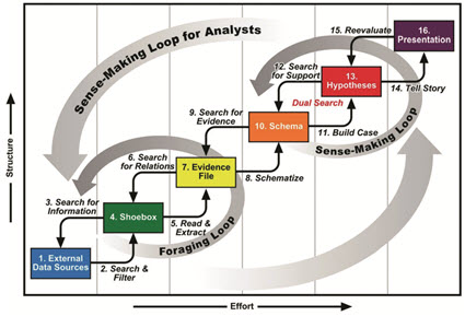 This graphic from the paper Toward a Deeper Understanding of Data Analysis, Sensemaking, and Signature Discovery helps you understand the sense making process.